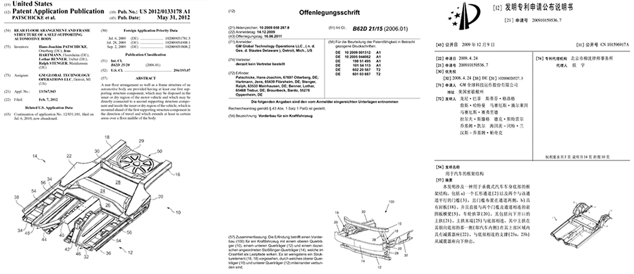 Important patents released in Germany, US and in China regarding BIW and Exterior Technology